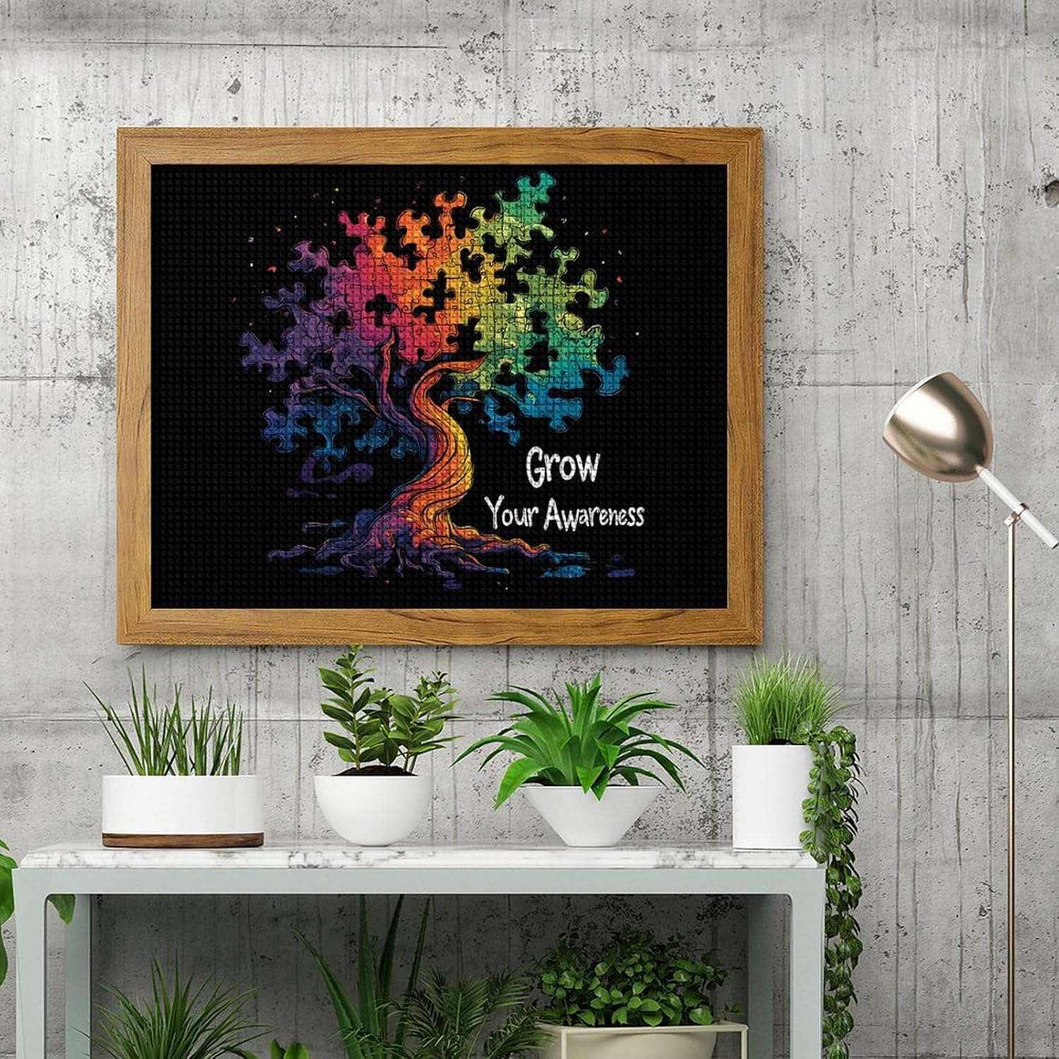 Autism Awareness Day Month Grow Your Awareness Printed Diamond 5D Painting Kits DIY Full Drill Crafts for Home Wall Decor 16x20 Inch Yellow Wood 50 * 40cm